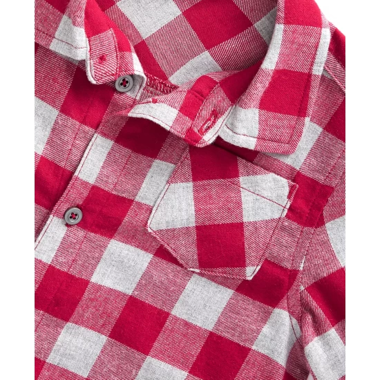 First Impressions adds button-up style to his wardrobe with this adorable long-sleeve shirt, showcasing a super-soft feel and buffalo check print.