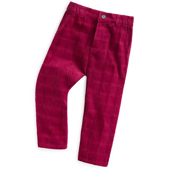 A spiffy little gentleman! Rich textured corduroy and a deep red-tone on these trousers by First Impressions offer a dapper look for your little boy.