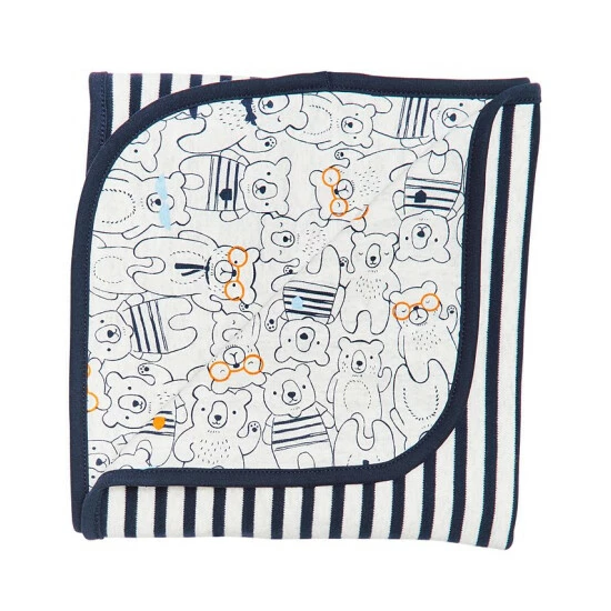 Starring sweet stripes and cute printed bears, this snuggly cotton blanket from First Impressions is a comfy essential.