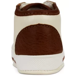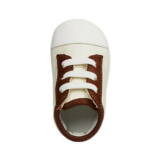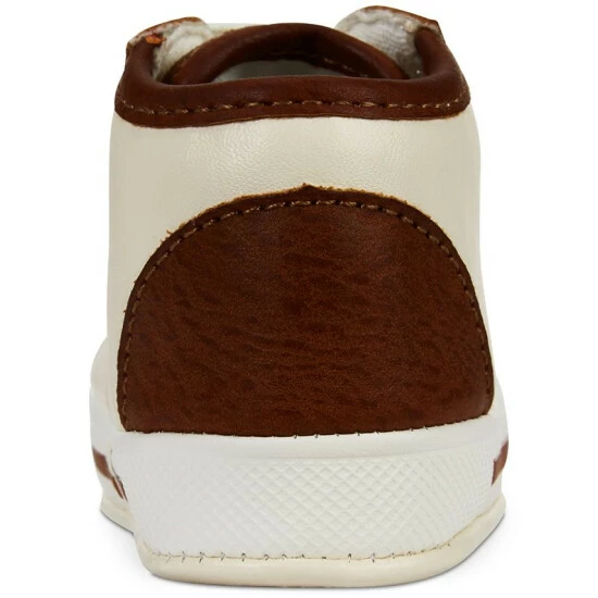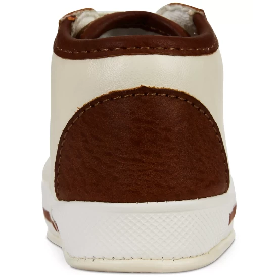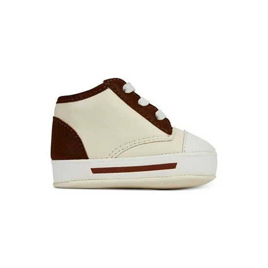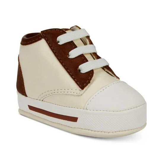 Two-tone styling at the upper and stay-put elastic laces make these slip-on sneaker from First Impressions the perfect choice for his first pair of shoes.
