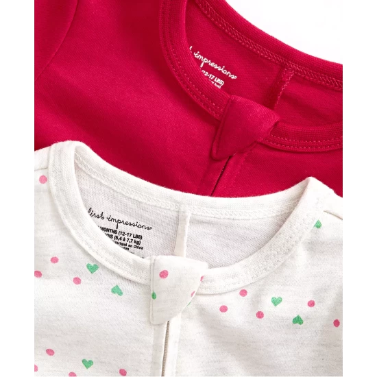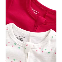 - Pack includes one solid coverall and one heart stripe-print coverall