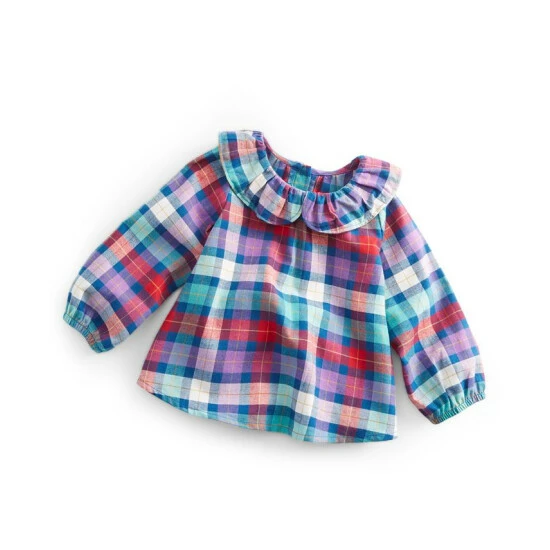 First Impressions brings a cheerful look to your little one’s wardrobe with the classic plaid of this cotton-soft top.