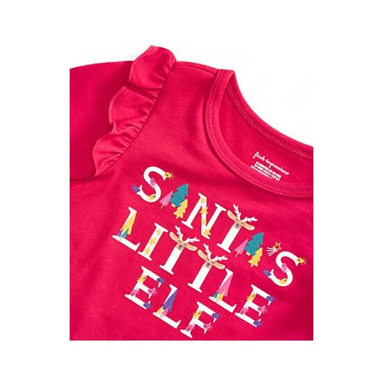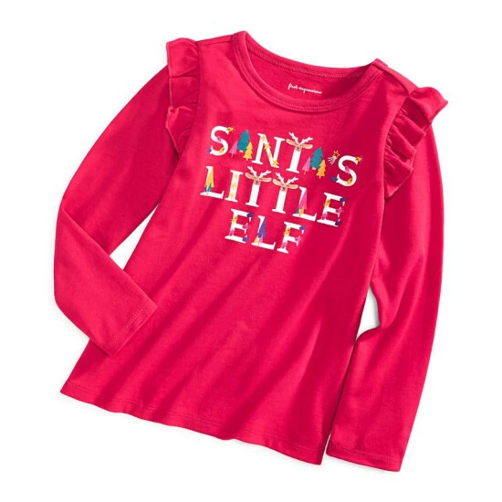 A festive graphic adds plenty of merry-making style to this long-sleeve top with ruffle detailing from First Impressions.