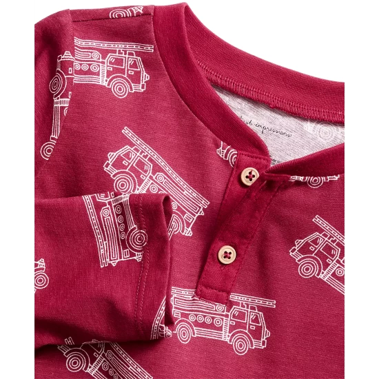 A long-sleeve Henley from First Impressions gets an instant upgrade from an allover fire truck print.
