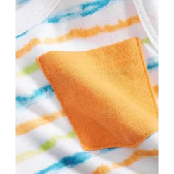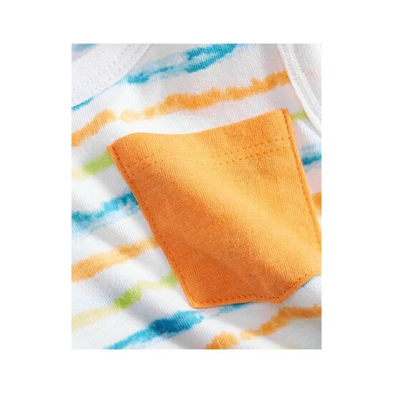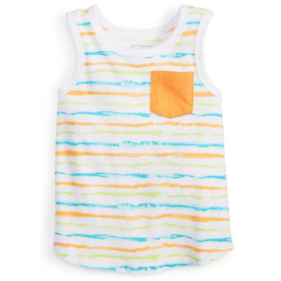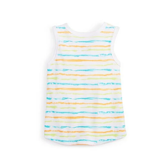 Make his beach-ready look pop with the vibrant painterly stripes printed on this comfortable tank from First Impressions.
