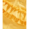 - Top: round neck; puff sleeves; ruffled trim at neck and cuffs; tie-dyed pattern