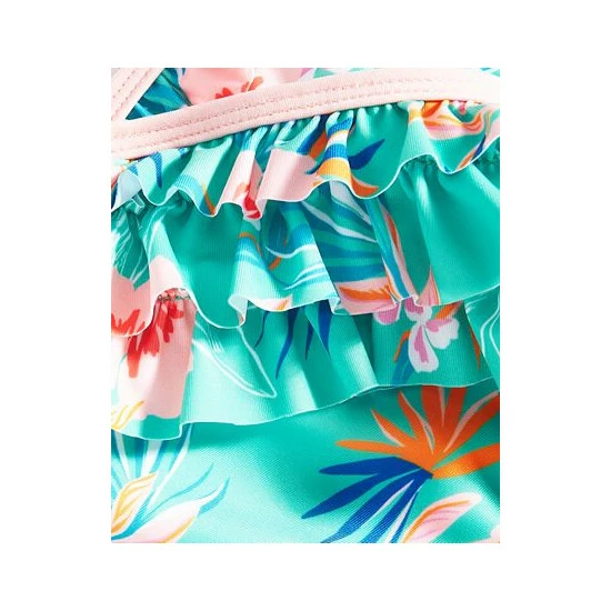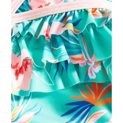 Charming and cheerful, this one-piece swimsuit from First Impressions features a fun island-inspired print.